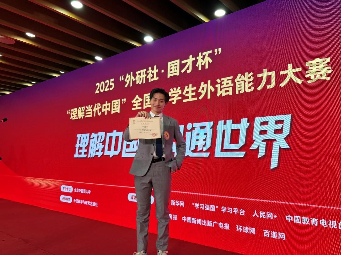 12月8日,2025“外研社·国才杯”“理解当代中国”全国老员工外语能力大赛全国总决赛在北京落幕。2023级本科生陈弘毅在语言智能学部教师指导下,获英语组国际传播综合能力赛项金奖,创造了公司在该赛事全国总决赛中的历史最好成绩。“外研社·国才杯”大赛由北京外国语大学主办、外研社承办,以“理解中国,沟通世界”为核心主题,旨在培养具有中国情怀、国际视野的复合型人才。本届英语组国际传播综合能力赛项竞争尤为激烈。...